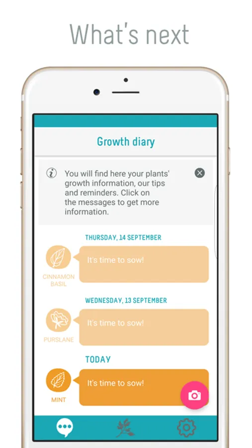 Activer les notifications push et vous recevrez le conseil adapté au stade de croissance de votre plante: germination, taille (vidéos à l'appui), notre sélection de recettes, nos techniques de conservation et de rempotage etc.