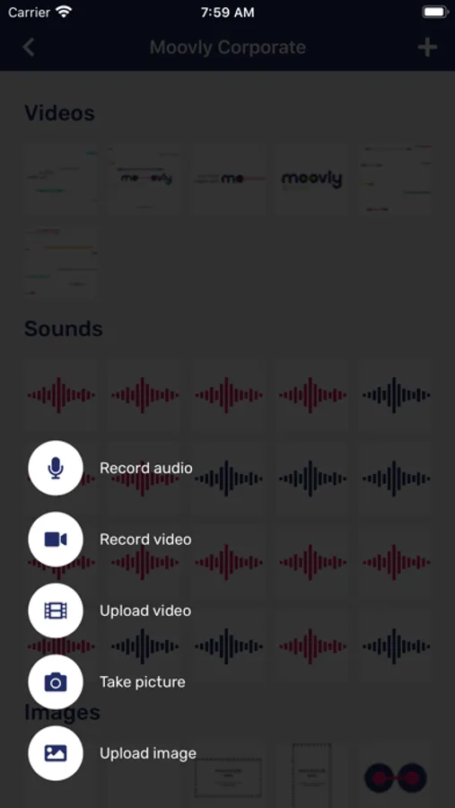 * Record or capture media such as sounds, videos and pictures, or upload media straight from your Camera Roll or local storage.
