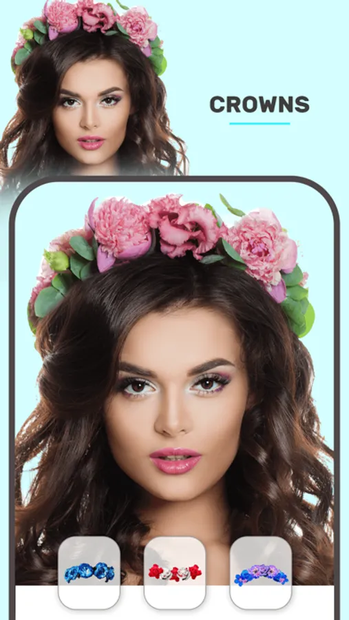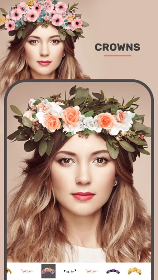 Flower Crown Image Editor is your new photographer Create your pretty new look with nice flowers and then send it on social network.