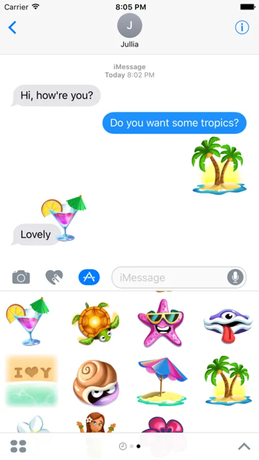 Tropic Stickers gives you access to the most high-quality, unique and creative emojis developed to enhance your messaging and allow you to freely express yourself.