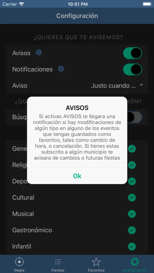 Fiestas por distancia, notificaciones a tu gusto de tus eventos favoritos, notificaciones PUSH, guarda tus localidades favoritas, selecciona lo que te interesa ver... y mucho más ahora y por llegar.