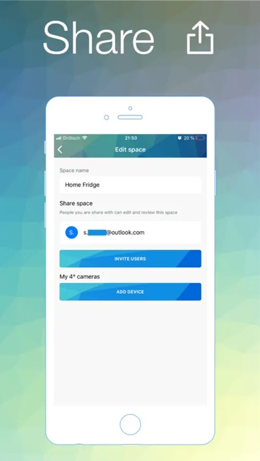 Share fridge photos and the shopping lists with your family or coworkers - each space like home or office can be shared with certain people.