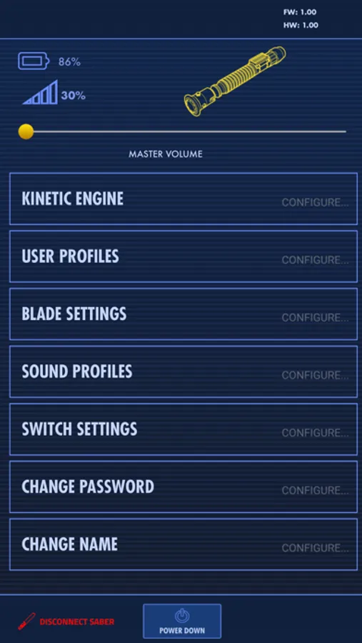 6. Saber model and name identification. Give your Smart Saber™ a name. The identity crisis is over