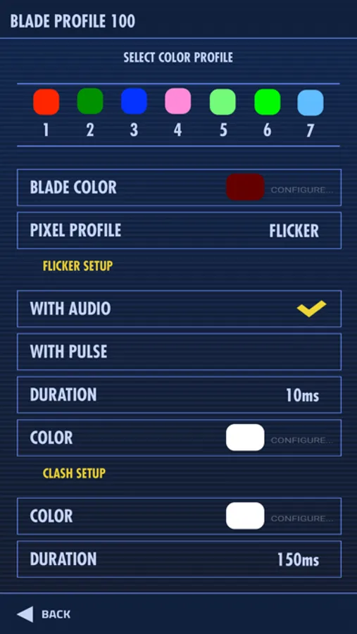 3. Control every aspect of your standard or, neo-pixel blade settings. Choose from unlimited colors and manipulate the blade performance using features like pulse, flicker, clash and a whole lot more