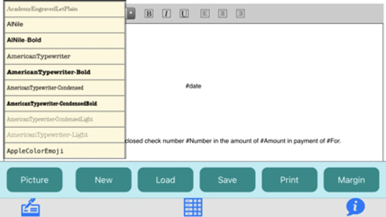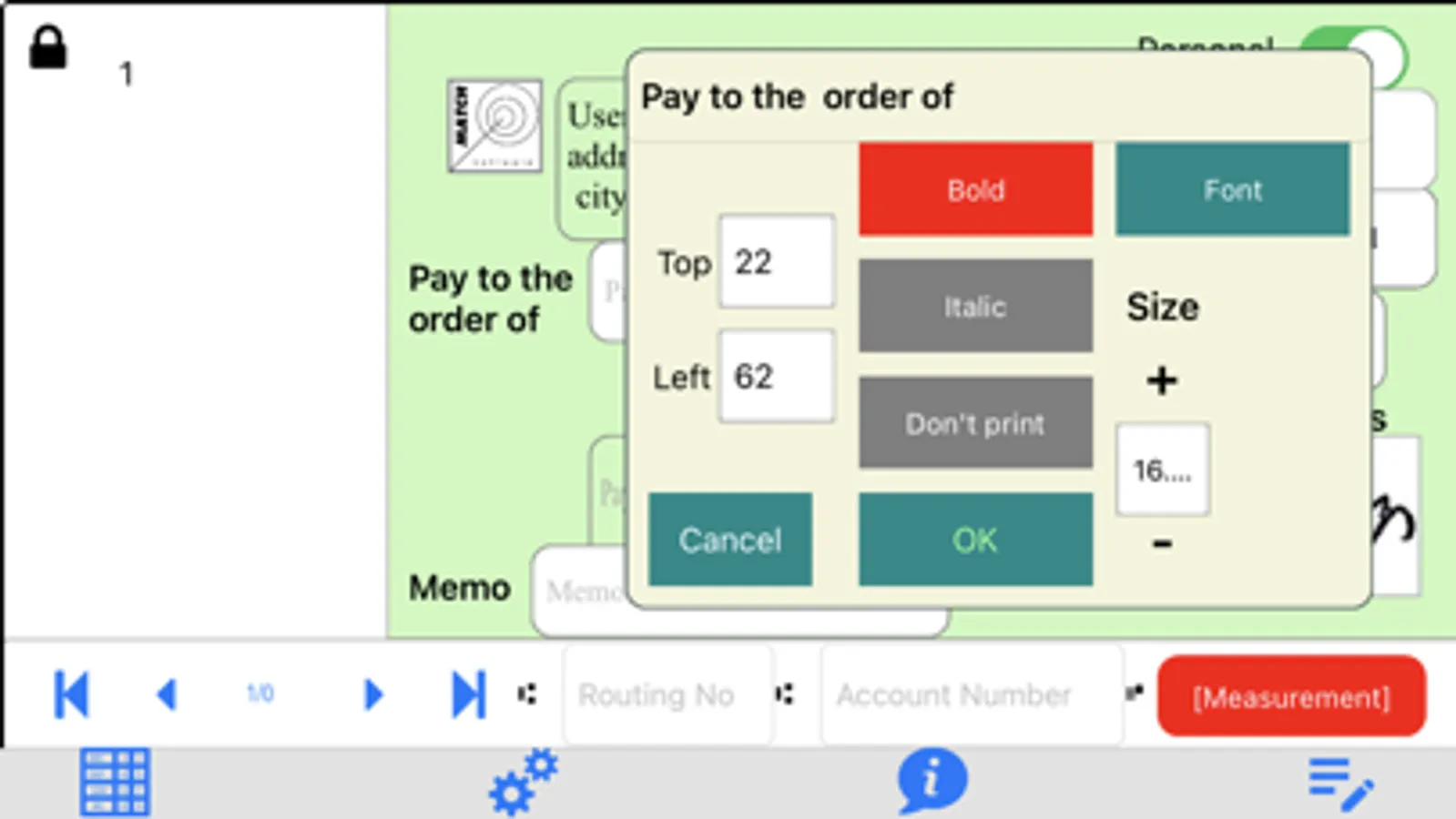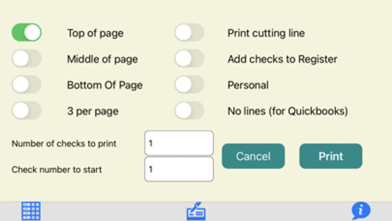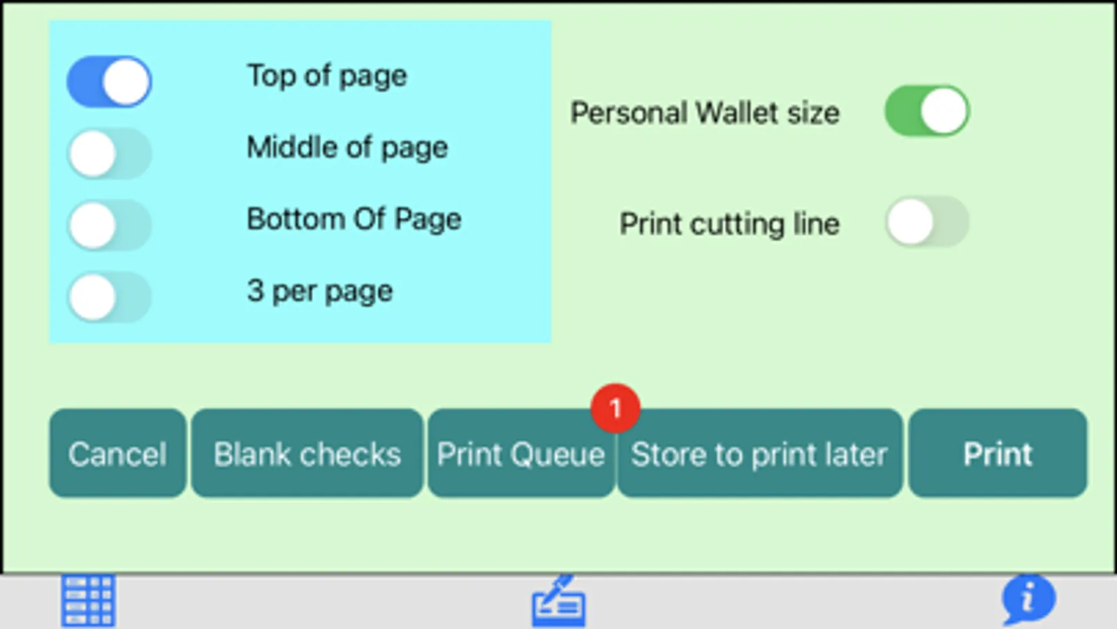 Print checks and their cover letter on the same page directly from your iOS device with this easy to use check printing application : enter the order (payee), the Dollar amount, and voila !