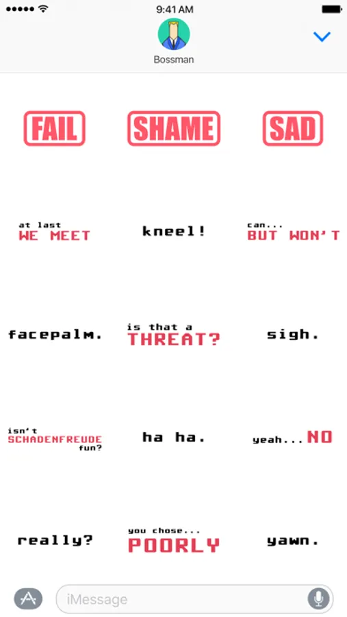 You'll find 70+ stickers to choose from, including a rainbow-barfing unicorn, an accidental mushroom cloud, and a toaster running for president.