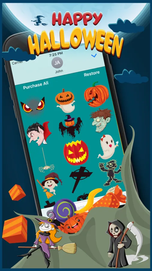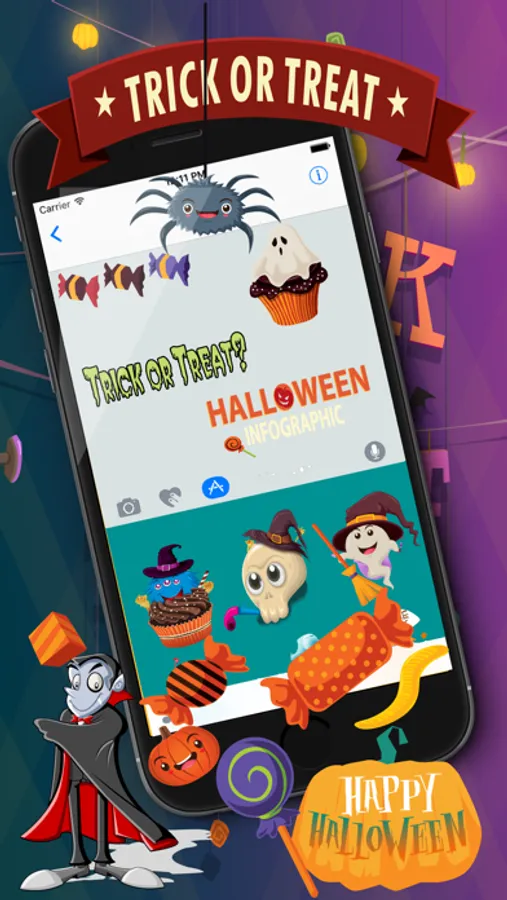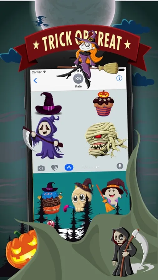 Happy Halloween best way to Trick or Treat your friends with HalloMoji send them awesome animated sticker and emojis download now and find out the coolest halloween Theme