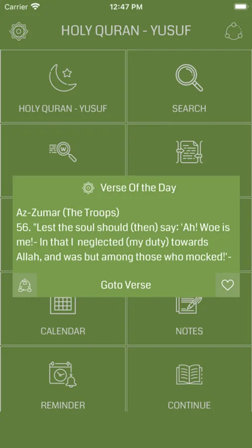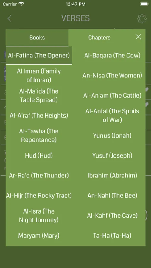 - An swape access to bookmark and back to other chapters with Holy Quran Audio Yusuf verses.