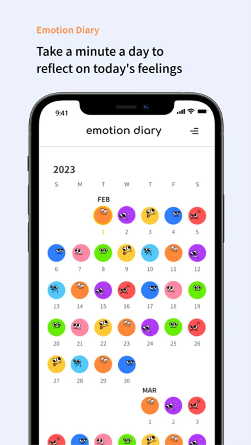 Write down the feelings you feel every day in a simple diary with a cute one emoticon. I can check my emotional changes by building up my emotions that change day by day.