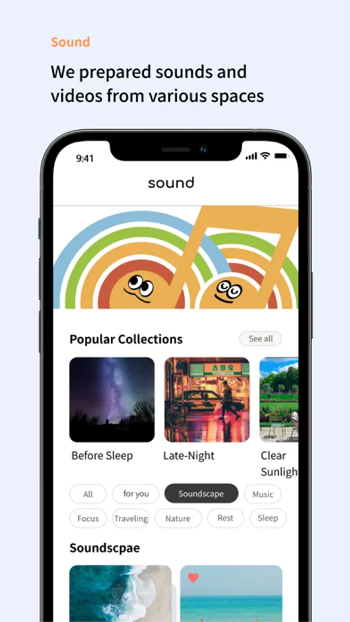It provides natural sounds and various ASMRs recorded and filmed by itself. With the timer function, you can enjoy it comfortably for as long as you want, or set a target time to concentrate in a relaxed state.