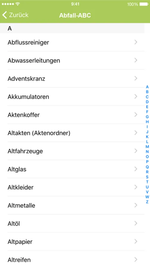 Das Abfall-ABC liefert für mehrere hundert Stoffe die nächstgelegene Entsorgungsmöglichkeit. Infos zu Anlieferzeiten, Kosten und Annahmebedingungen helfen Ihnen Ihre Abfälle schnell und fachgerecht zu entsorgen. Mit der Kartenfunktion finden Sie schnell den Weg von Ihrem Standort zur Entsorgungseinrichtung.