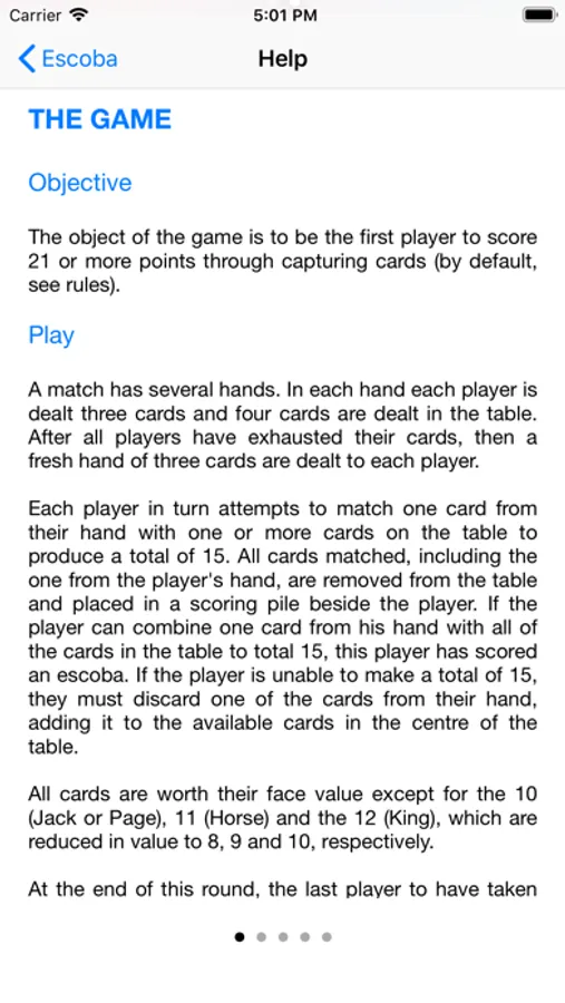 - The object of the game is to be the first player to score 21 or more points through capturing cards (By default. It's possible to play to 11 or 15 too).