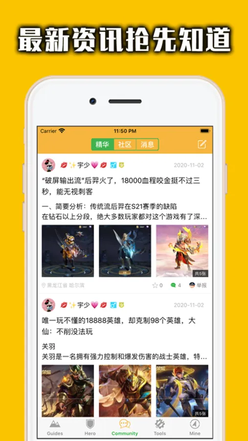 1,攻略资讯:最新的资讯,攻略秘籍,英雄出装,测试服相关信息。
