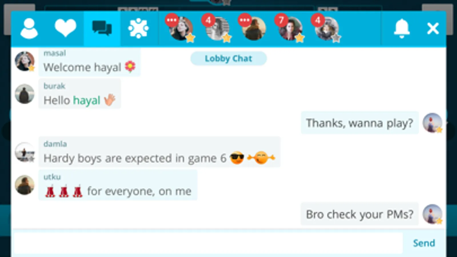 You can meet new people, chat and make friends. You can play games with your friends. Lobby, table and private chats are at your disposal. You can easily write your messages using dictation without using the keyboard. With premium services, you can customize your membership and you can be different.