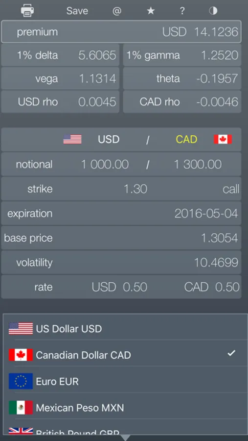 FX Option - is a new calculator for FOREX options. The app has been specifically developed to efficiently price the options. It allows quick and easy calculation of the premium and risk parameters for various types of call and put options.