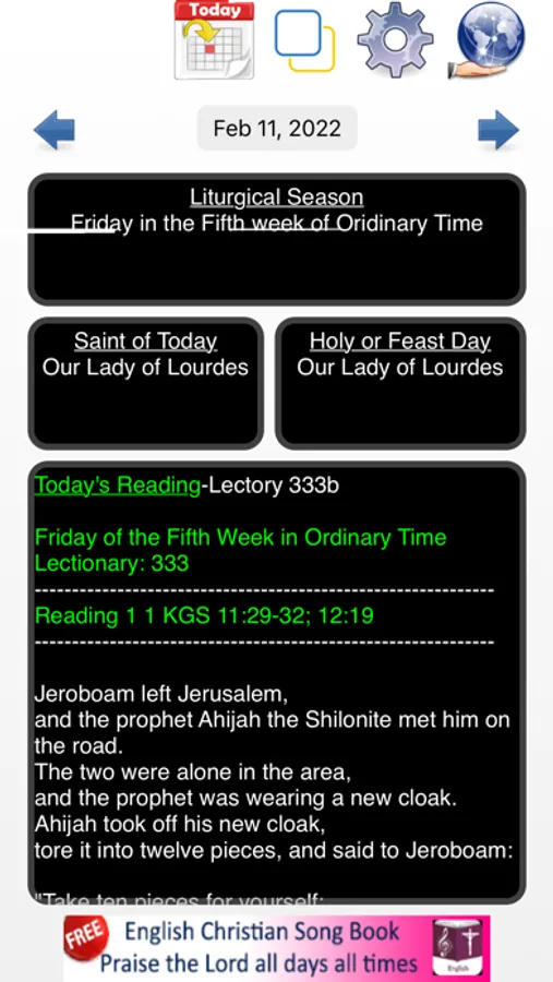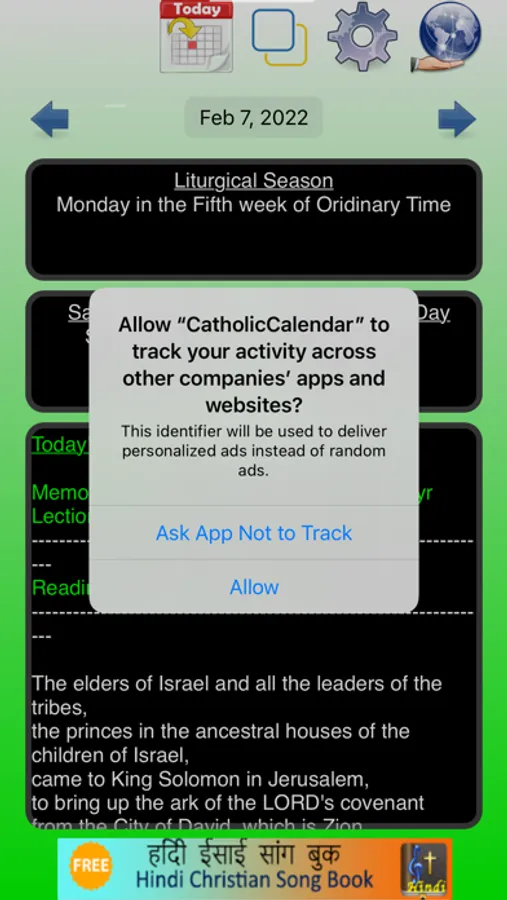 The Liturgical Calendar application will help you to find the Holy Days, Feast for any year on the go! The catholic feasts like Advent start date, Tridumm, Lent are calculated dynamically for each year.
