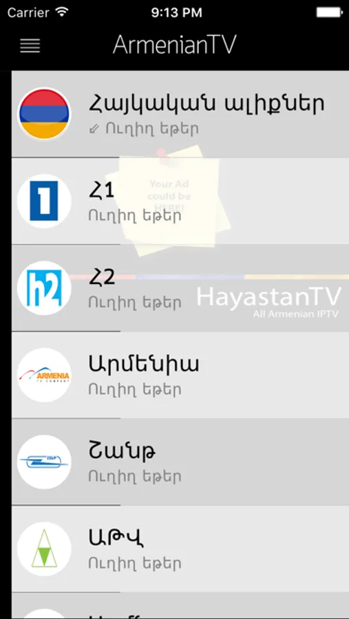 For suggestions and advertisement in our app please contact us at: info@hayastantv.com