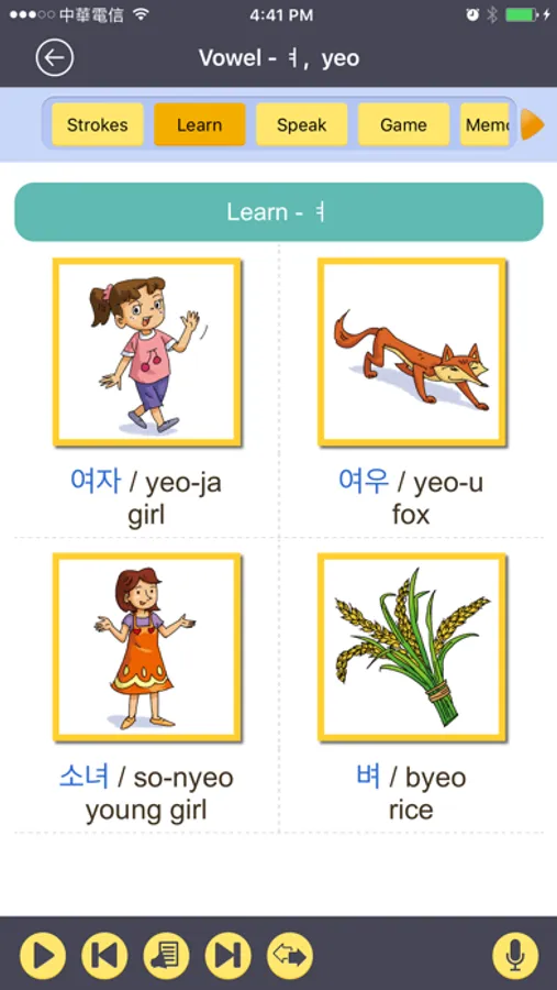 This app is dedicated to Korean learning beginners. It helps memorize the forty sounds quickly by practicing four language learning skills: listening, speaking, reading, and writing. Writing Strokes Display function let you know not only the 40 Korean alphabet sounds but also their strokes writing order; Handwriting Window allows you to practice writing and increase your impression; Quiz function can check your understanding to our lessons and emphasize your memory; Colorful pictures and interesting tongue twisters make your learning process funnier.