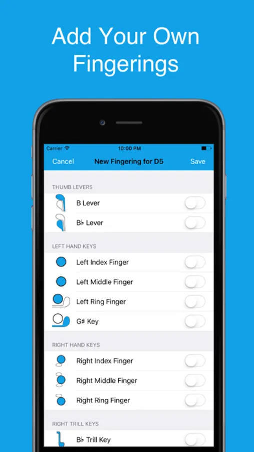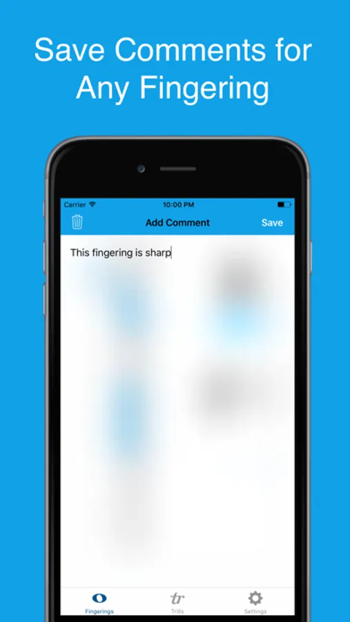 You can also keep comments for each fingering in the app, so you can keep track of the characteristics of each fingering as it plays on your own instrument.