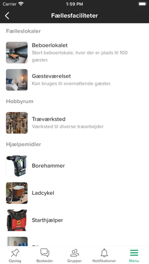 You can book shared facilities like a ladder, a wagon or a common room. With Borigo it is easier to share common facilities.