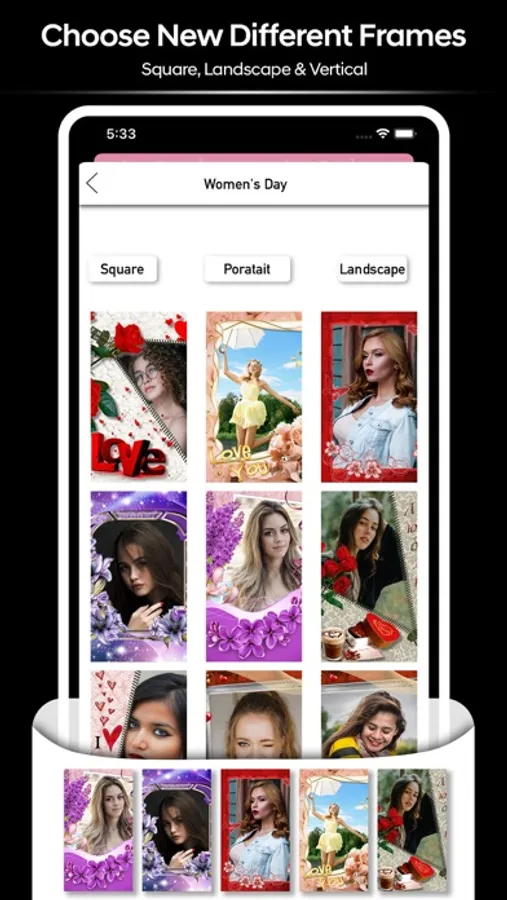 - Photos can be adjusted to frames by zoom in, zoom out two finger gestures !