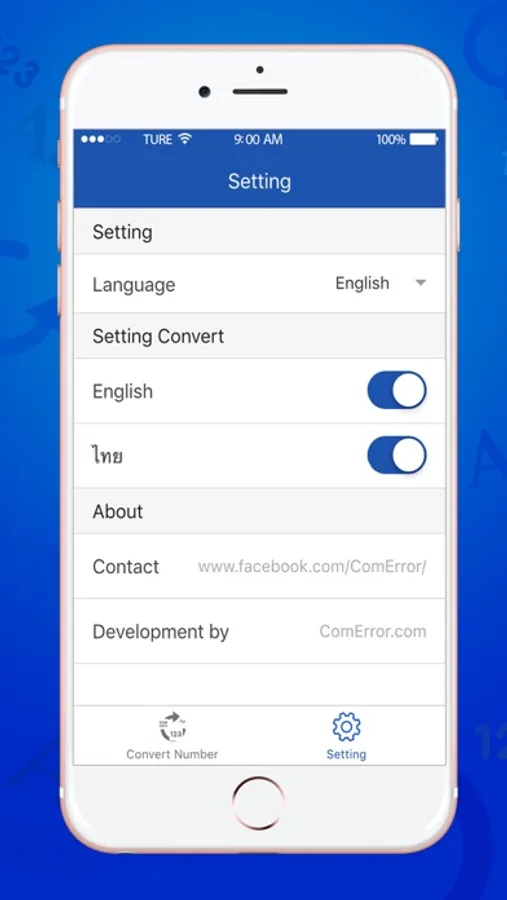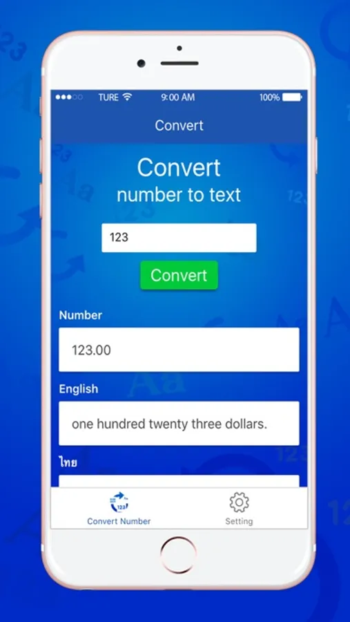 This application will help you to read numeric number to text for read and speech, This convert number app is support Thai and English languages.