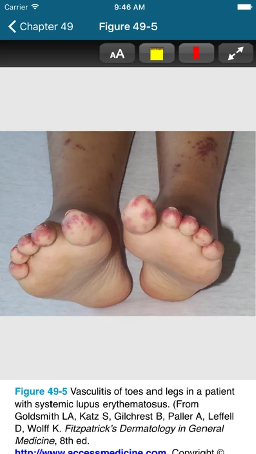 This app is very intuitive and easy to navigate, allowing you to browse the contents or search for topics. The powerful search tool gives you word suggestions that appear in the text as you type, so it is lightning fast and helps with spelling those long medical terms. The search tool also keeps a recent history of past search terms so you can go back to a previous search result very easily. You have the ability to create notes and bookmarks separately for text, images and tables to enhance your learning. You can also change the text size for easier reading.