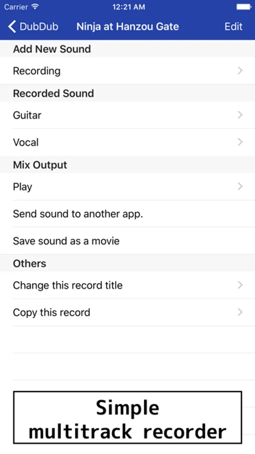 You can export to your sound to Camera Roll as a movie, and also you can import sound from movie in Camera Roll.