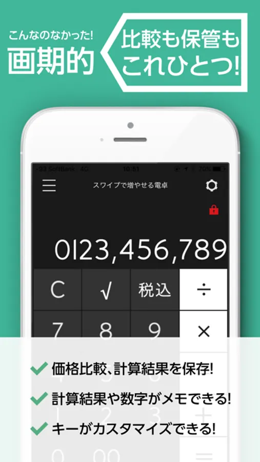 ・各電卓をロック(誤操作防止)することができます。