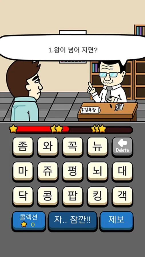 흔히 아재 개그로 불리는 언어유희 퀴즈, 하이개그, 허무개그 그리고 넌센스 퀴즈등의 유머를 모아 하나의 게임으로 만들었습니다.
