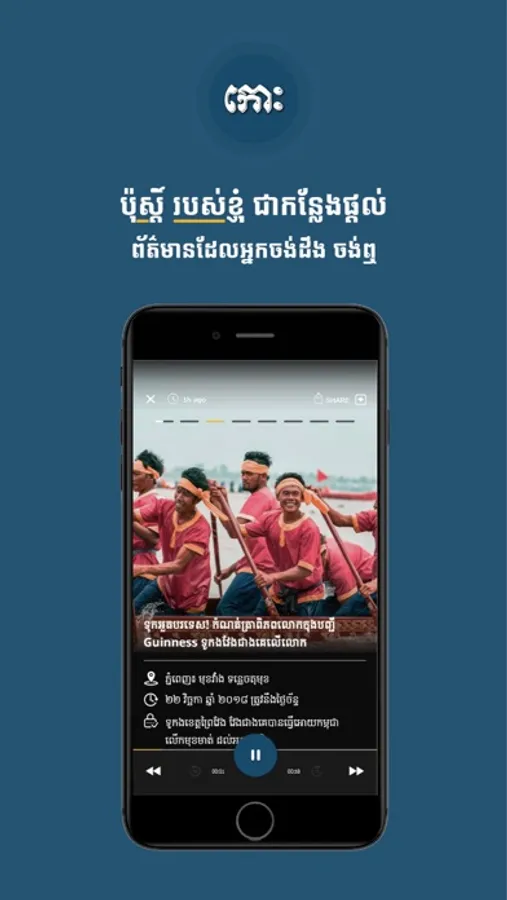 This application will give you Cambodia's latest top stories, business news, sport news and plenty of useful information such as services, tourism and cultural news in Khmer language. You can also listen to live Radio of Kohsantepheap directly from this application. Moreover, all these information can be easily shared among your friends via Twitter, Facebook and e-mail within the application itself. All latest articles are loaded and stored locally in the device so users can read news in offline mode without Internet connection.