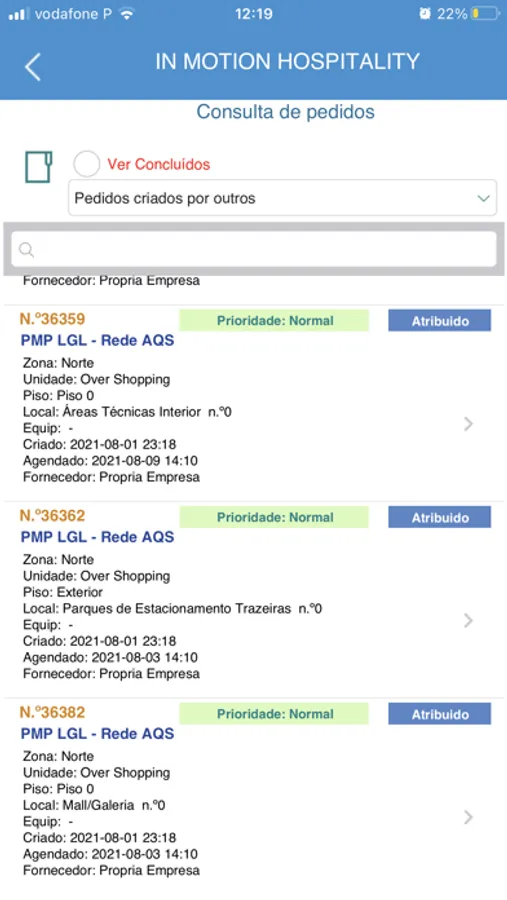 Qualquer utilizador credenciado (pessoa responsável) pode emitir pedidos ou ordens de trabalho utilizando as versões moveis ou o desktop para em poucos segundos solicitar uma intervenção.