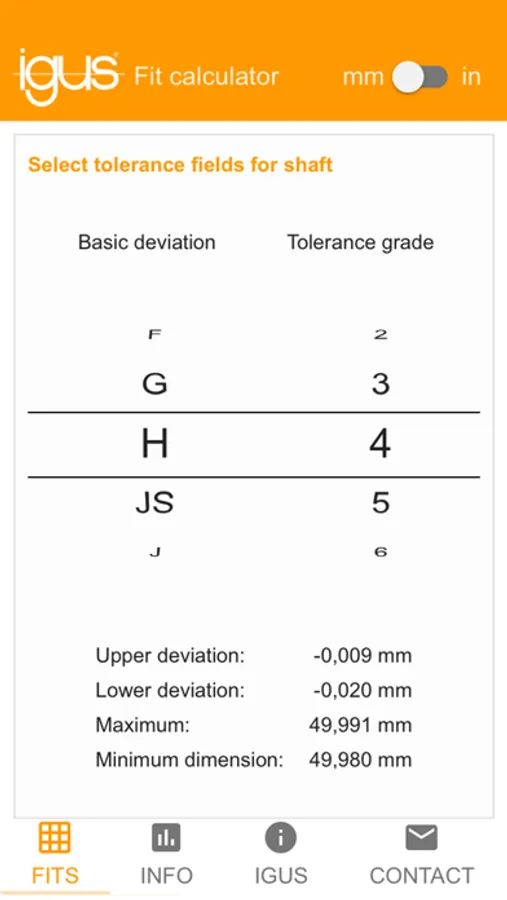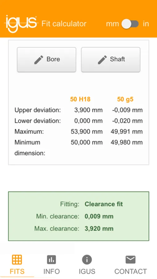 With the igus® Fit Calculator you can quickly and easily calculate fits and tolerances in accordance with ISO 286. In addition, the maximum and minimum dimensions as well as the associated type of fit are shown.