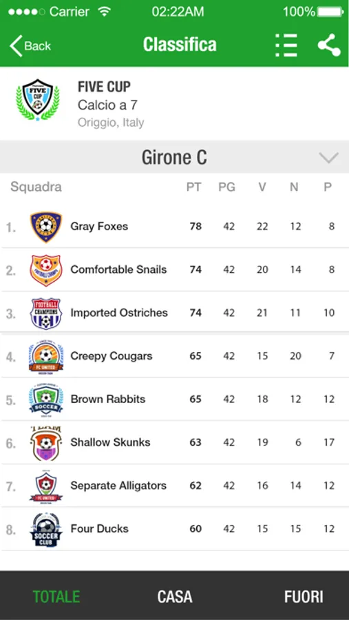 - Consultazione Classifiche Squadre e Giocatori