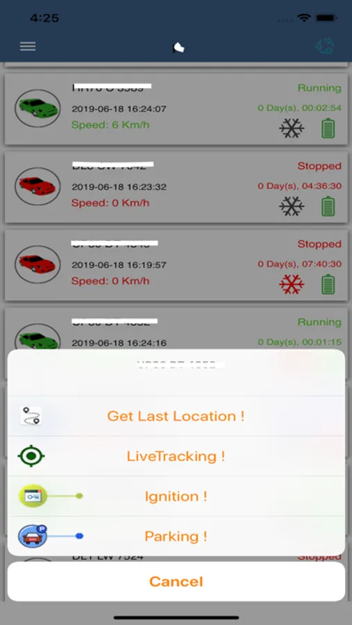 1. Track the vehicle(s) last location on List & map.