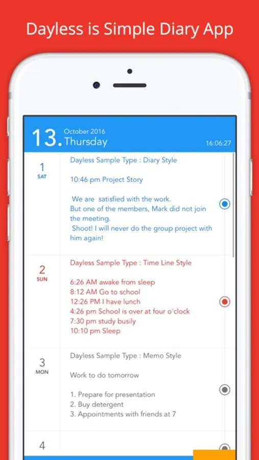 ■ When creating a diary, pressing the time stamp button automatically takes the current time.