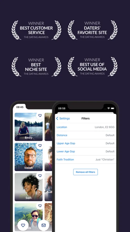 We have won over 15 awards, including Daters’ Favourite Dating Site, Best Customer Service, Best Niche Site; awarded by The Dating Awards, iDate International and the Good Website Guide.