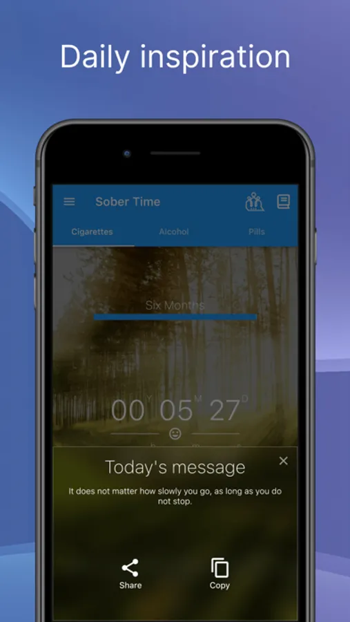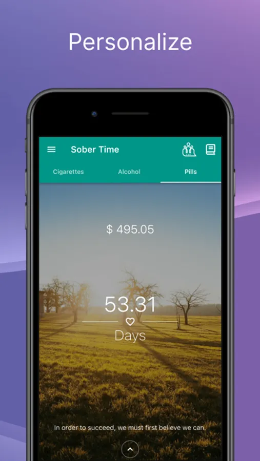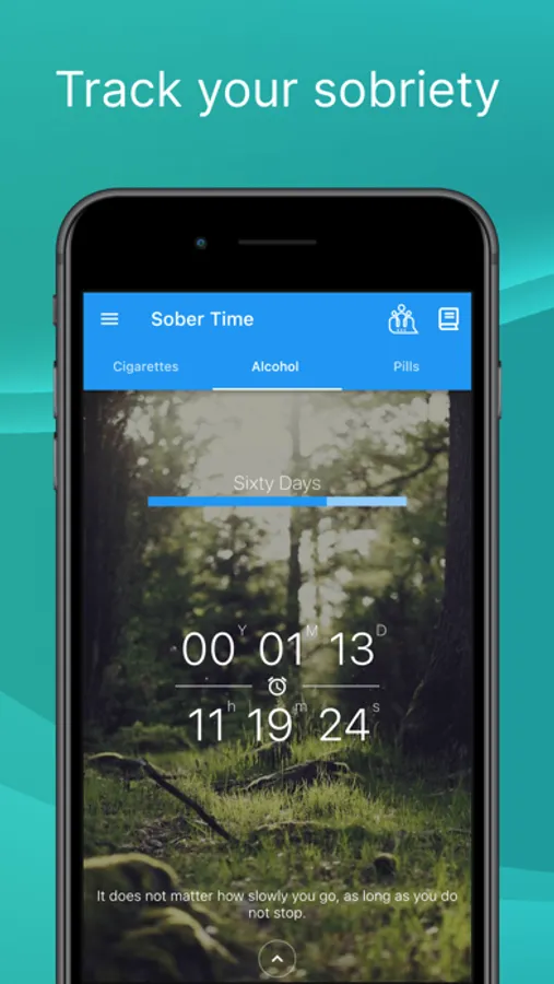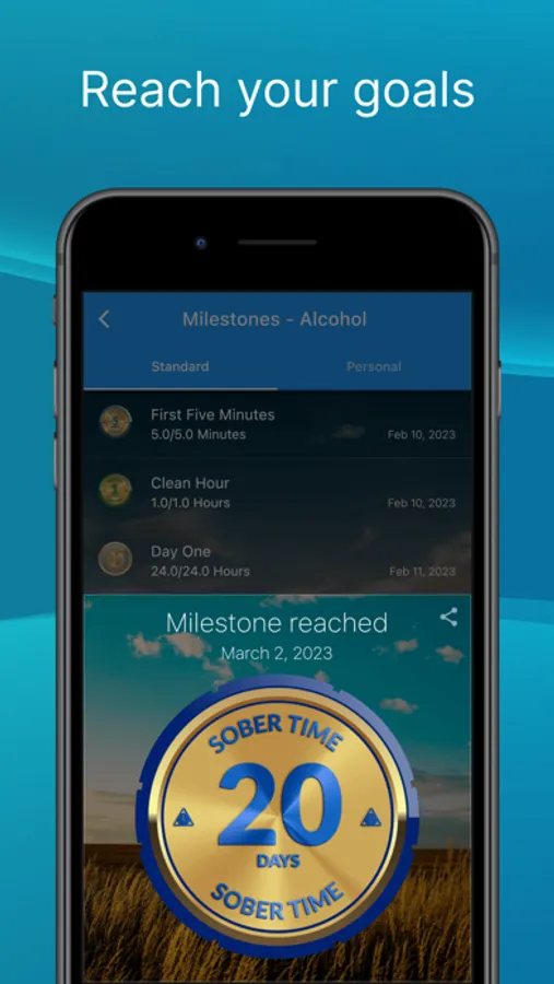 Sober Time helps you stay motivated and inspired by showing daily inspirational messages and setting realistic, achievable goals for you. You can further customize your goals by editing them or even creating your own. Each goal will be tracked in the app and you'll receive a notification when you've reached them.