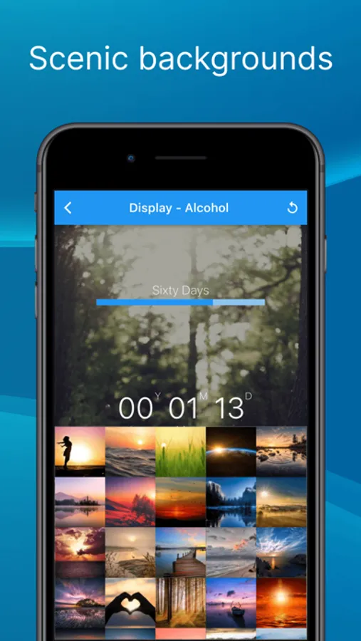 Each addiction that you track with Sober Time can be individually personalized. Choose from one of the scenic nature backgrounds or upload your own. Set up your own heading and change the counter to show the way you like it. Varied display modes, like heartbeats or total seconds, give you complete freedom of expression.