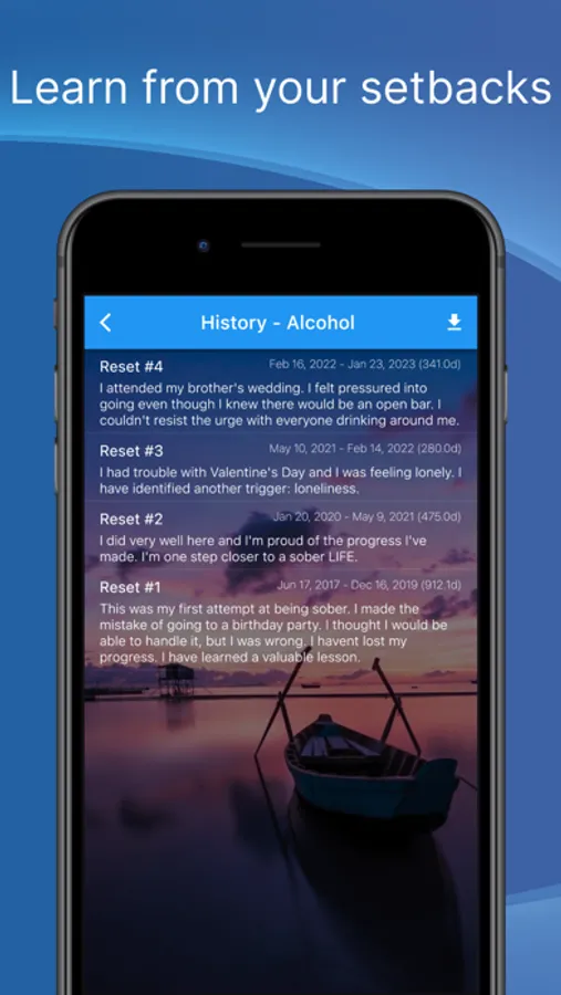 - Track your relapses and add notes to them