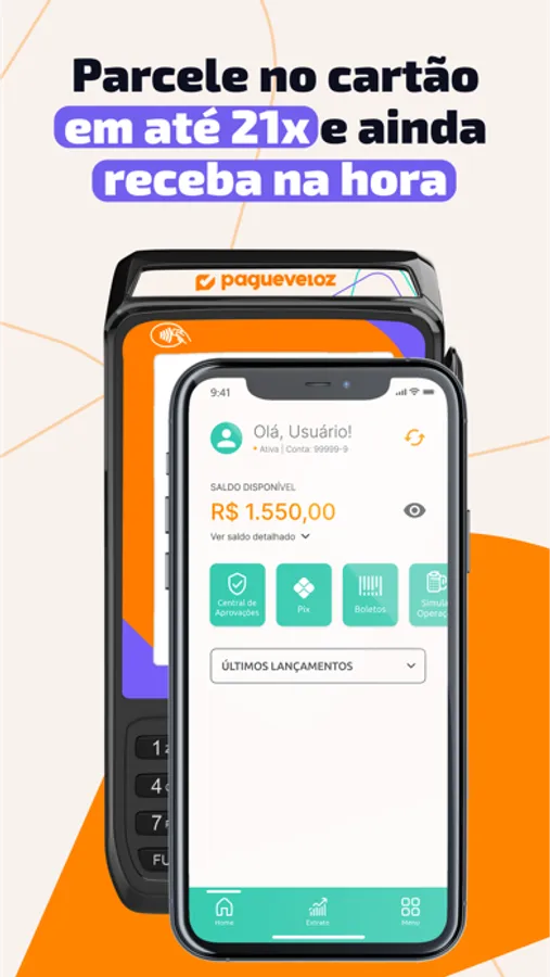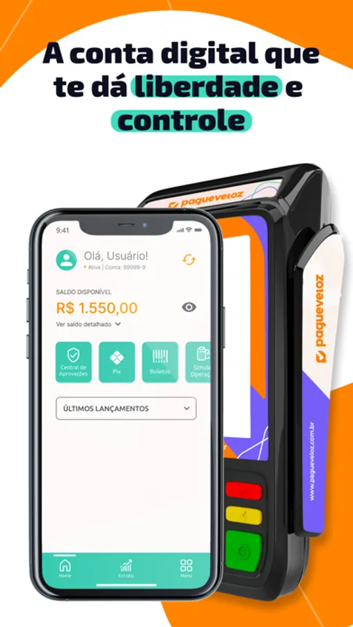 Emita boletos, faça e receba transferências, faça Pix, pague suas contas, recarregue o seu celular ou faça cobranças e receba o dinheiro na sua conta instantaneamente, tudo isso de forma rápida e intuitiva, mantendo você no controle sempre.
