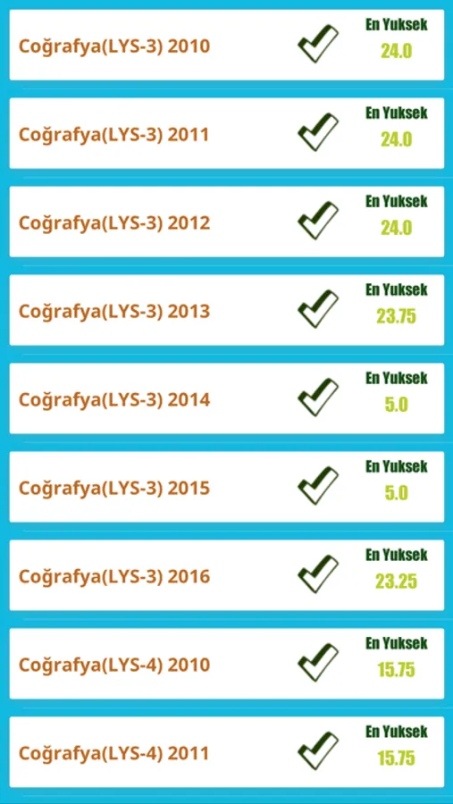 LYS-2016, LYS 2015, LYS 2014,LYS 2013,LYS 2012,LYS 2011 ve LYS 2010 u kapsamaktadır.