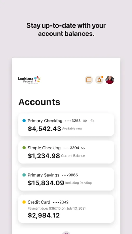 Start banking wherever you are with Louisiana FCU Mobile! Available to all Louisiana Federal Credit Union online banking members, Louisiana FCU Mobile allows you to check balances, make transfers, pay bills, and deposit checks.