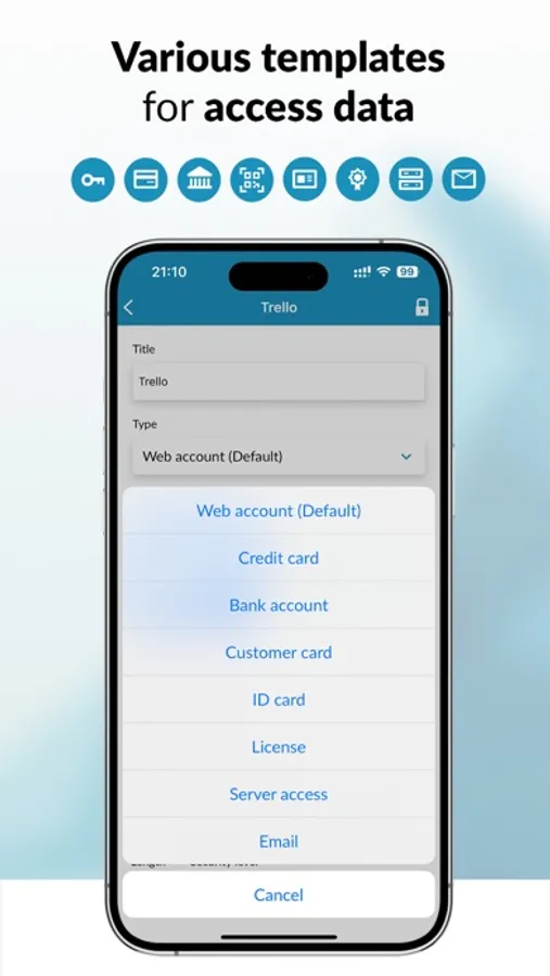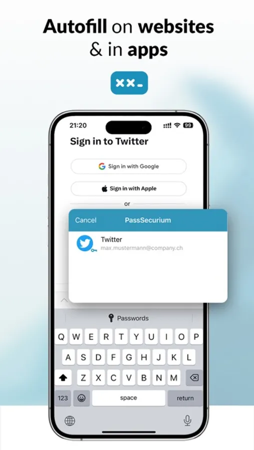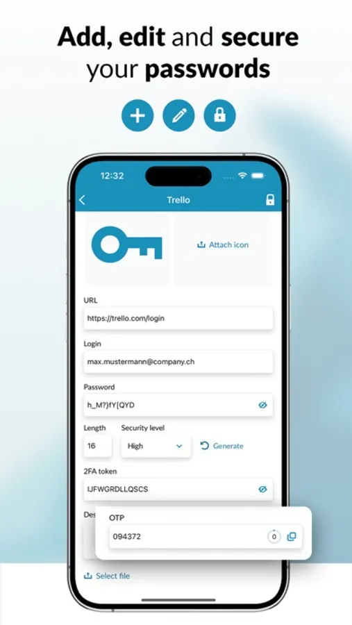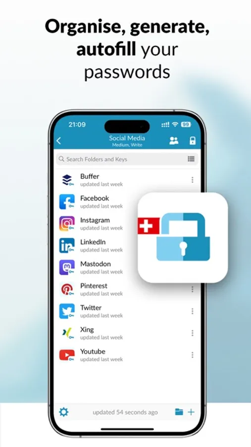 With PassSecurium™ you can access your password vault, and manage passwords securely and conveniently. Besides standard functions (create / view / edit / delete passwords) PassSecurium™ offers an integrated password generator with selectable complexity.