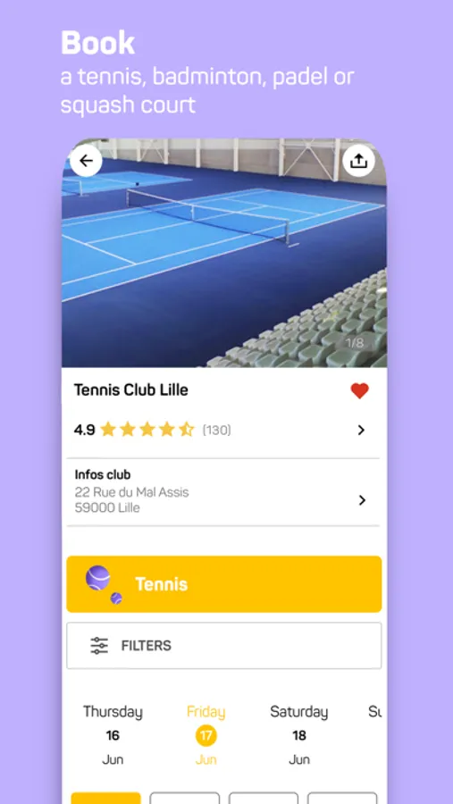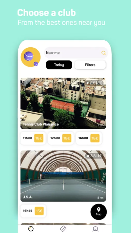 You can now book a Tennis, Padel, Badminton or Squash court in 3 clicks, in the best clubs near you: