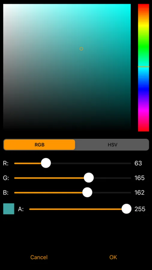 - Choose from a large colour palette or add your own custom colour with the colour picker. Your custom palette will be stored along with your project