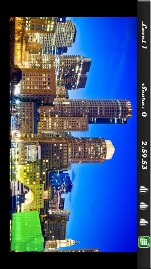 City Lights - How's your memory? The object of the game is repeat the exact light pattern after it's been displayed. Each level starts off with flashing 2 buildings and increases by 1 for each round until the level is completed for that city.