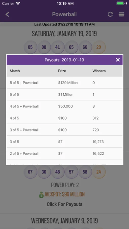 Easy and fast lottery jackpots, winning numbers, draw history, payouts and prize levels for Powerball, Mega Millions and State Lottery Games.