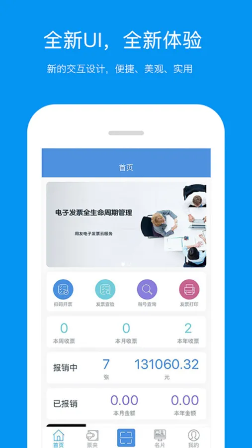 一款集合了电子发票的归集、查验、发票名片、自助开票、保修管理等多种功能的移动应用;为您提供覆盖全国范围城市、增值税全票种的一站式方便快捷的电子发票归集和发票查验服务;发票信息自动归类;发票保修到期提醒等多种便利个人应用功能。
