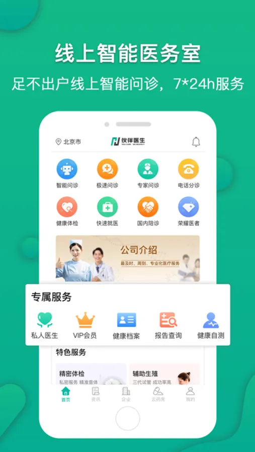 “伙伴医生”是一家专注整合国内外一流医疗资源,旨在打造私人医生+企业健康管理的综合性智慧医疗服务及应用的优质平台。平台自2016年成立至今,致力于打造一个全新的健康医疗生态,专业健管服务。